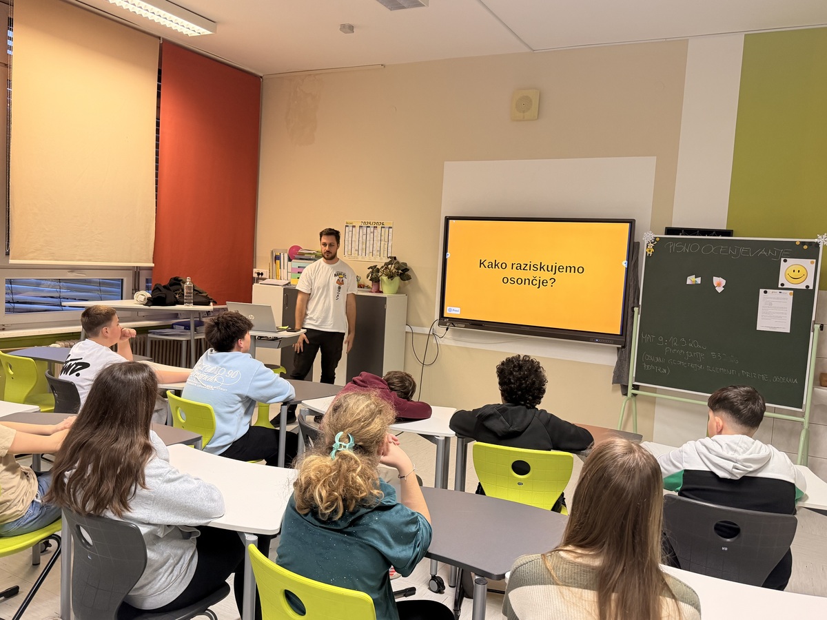 Na naši šoli smo v četrtek, 12. 3. 2026, pripravili zanimiv astronomski večer, ki je učence popeljal v svet planetov, zvezd in oddaljenih nebesnih teles. Večer se je začel z predavanjem člana Astronomskega društva Kmica, ki je učencem predstavil planete našega Osončja ter razkril nekaj zanimivosti o vesolju.