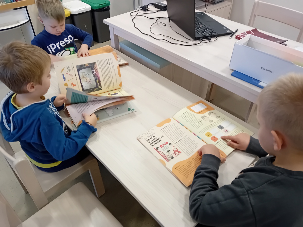 Otroci so me obiskali tudi v šolski knjižnici, kjer smo skupaj nadaljevali raziskovanje knjižnega sveta in utrjevali veselje do knjig.