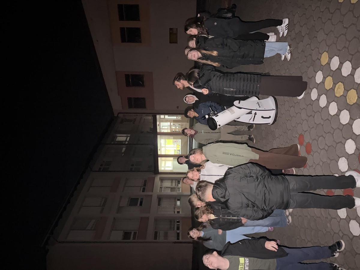 Najbolj pritegljiv del večera je sledil zunaj, ko smo nebo opazovali s teleskopom. Čeprav je bilo nekoliko oblačno, smo imeli srečo – uspeli smo opazovati Jupiter in njegove štiri lune, videli smo tudi nekaj meglic ter zvezde različnih barv.