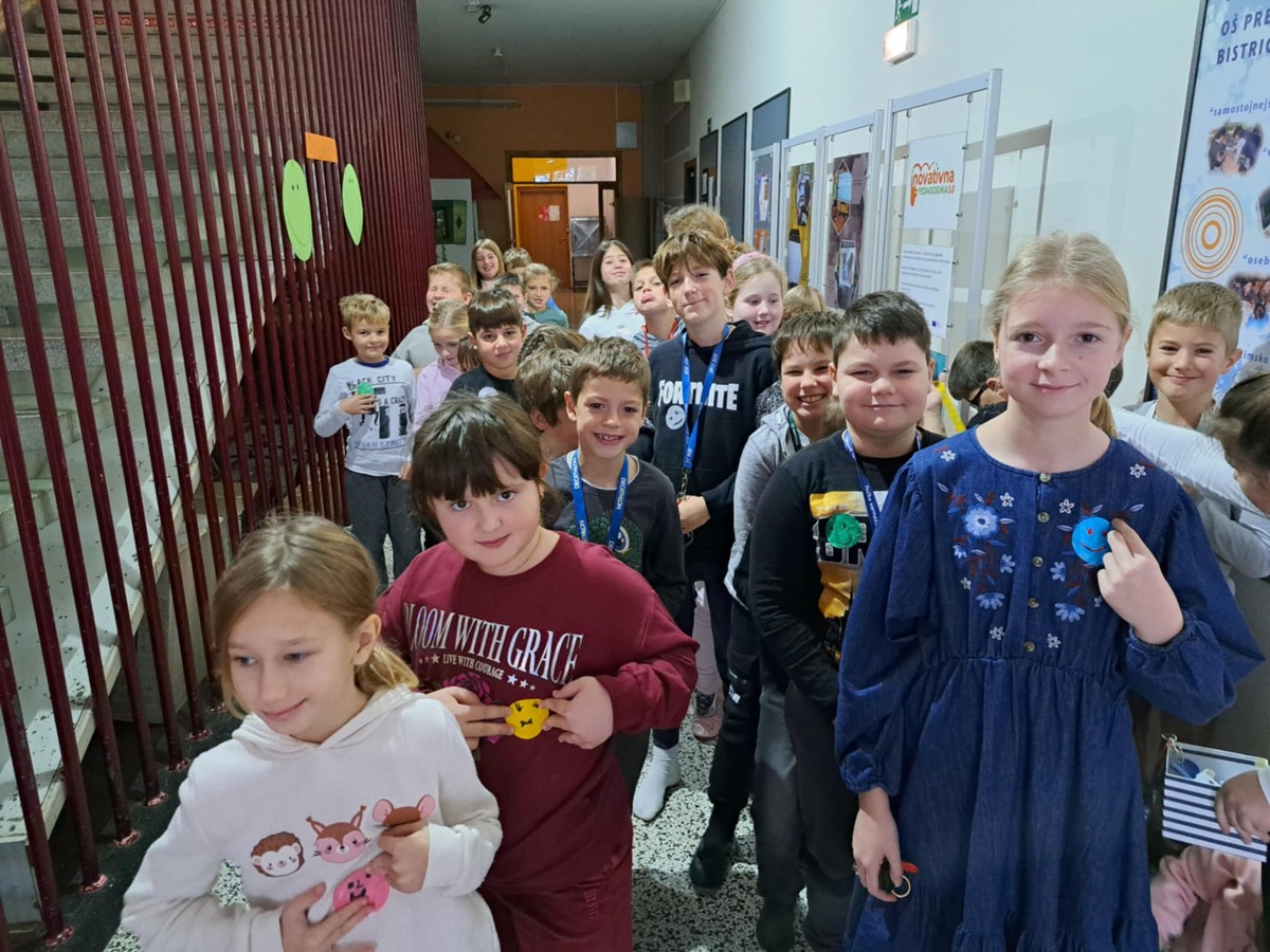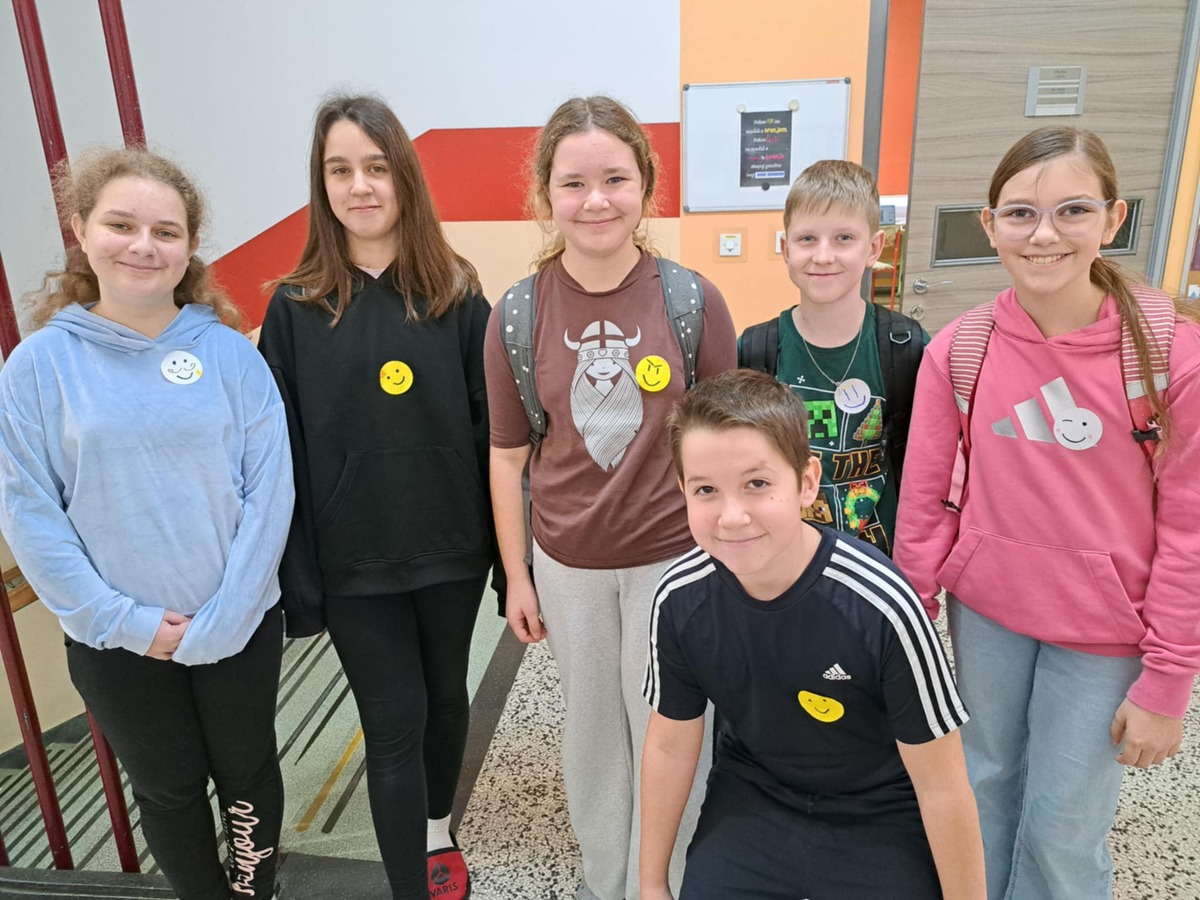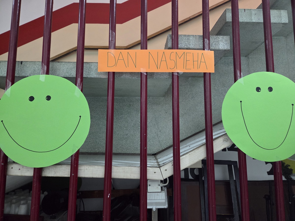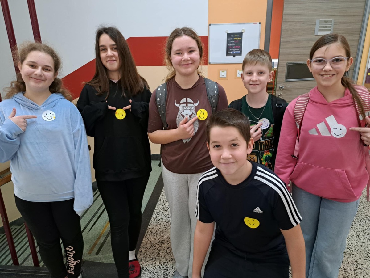 V ponedeljek, 8. decembra 2025, smo na šoli ustvarjali prijetno vzdušje, polno nasmehov in prijaznih besed. Vsak učenec in zaposleni si je na majico prilepil nalepko s smeškom, ki jo je izdelal sam. S tem smo želeli poudariti pomen pozitivne energije in prijaznih odnosov. Ves dan smo si podarjali nasmehe, prijazne besede in tople pozdrave.