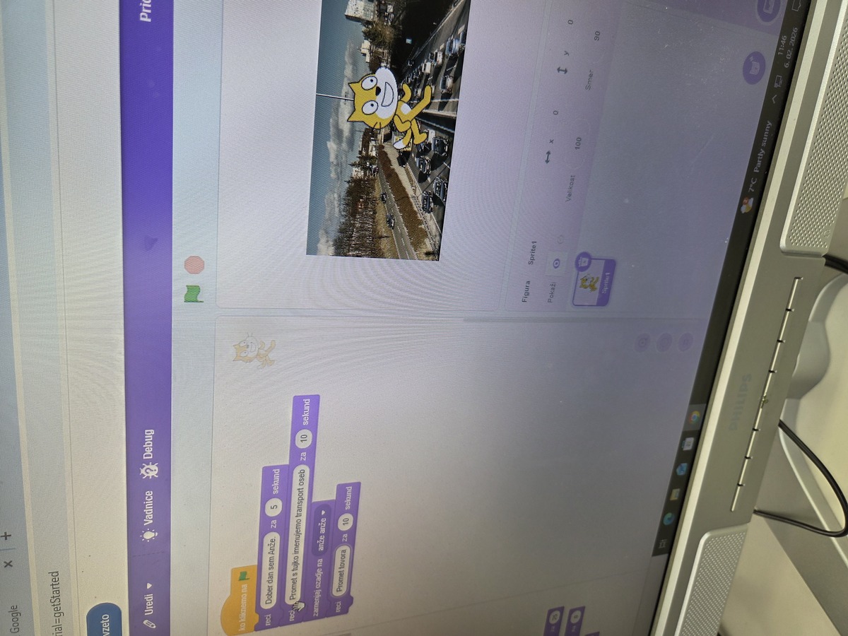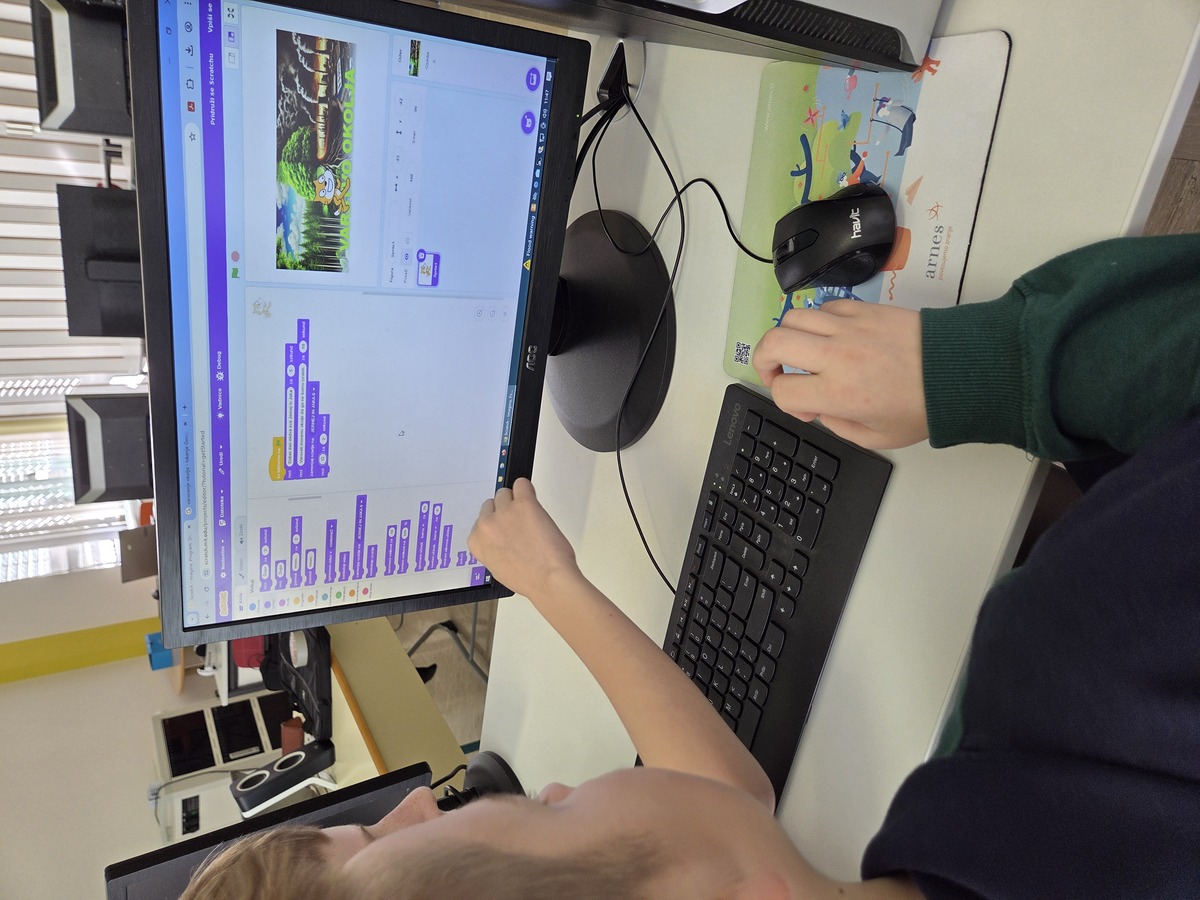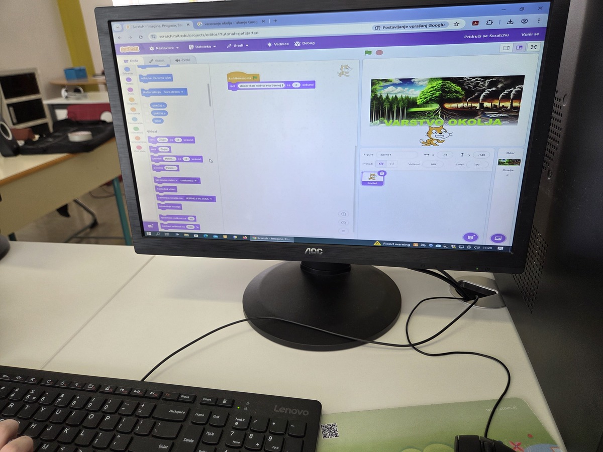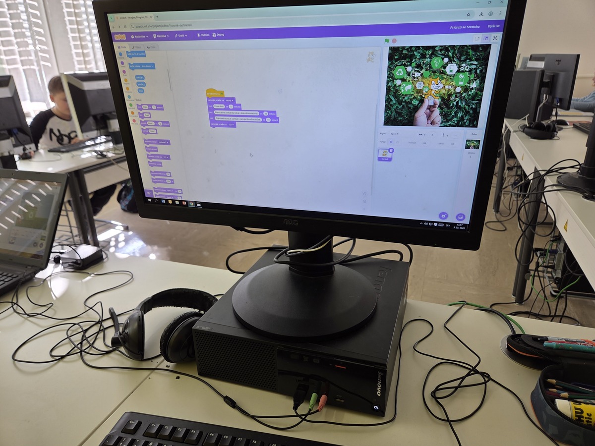 V 4. razredu smo v okviru projektov Erasmus+ in Inovativna pedagogika 5.0 izvedli posebno učno uro, v kateri so učenci na interaktiven in ustvarjalen način raziskovali okoljsko problematiko lokalnega pomurskega okolja. Namesto klasičnega pristopa so se učenci podali v svet programiranja ter svoje razumevanje okoljskih izzivov izrazili preko igrivih animacij in enostavnih iger v okolju Scratch.