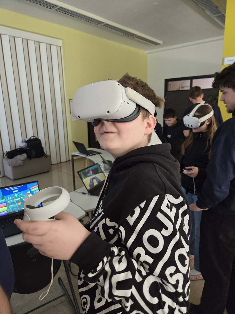 V tem duhu smo gostili dijake in mentorje iz SPTŠ, ki so za učence pripravili interaktivne delavnice z uporabo virtualne resničnosti. VR-tehnologija je učencem omogočila učenje z izkušnjo, prilagojeno različnim učnim stilom, tempu in interesom, hkrati pa spodbujala sodelovanje, medsebojno pomoč ter pozitivno učno klimo.