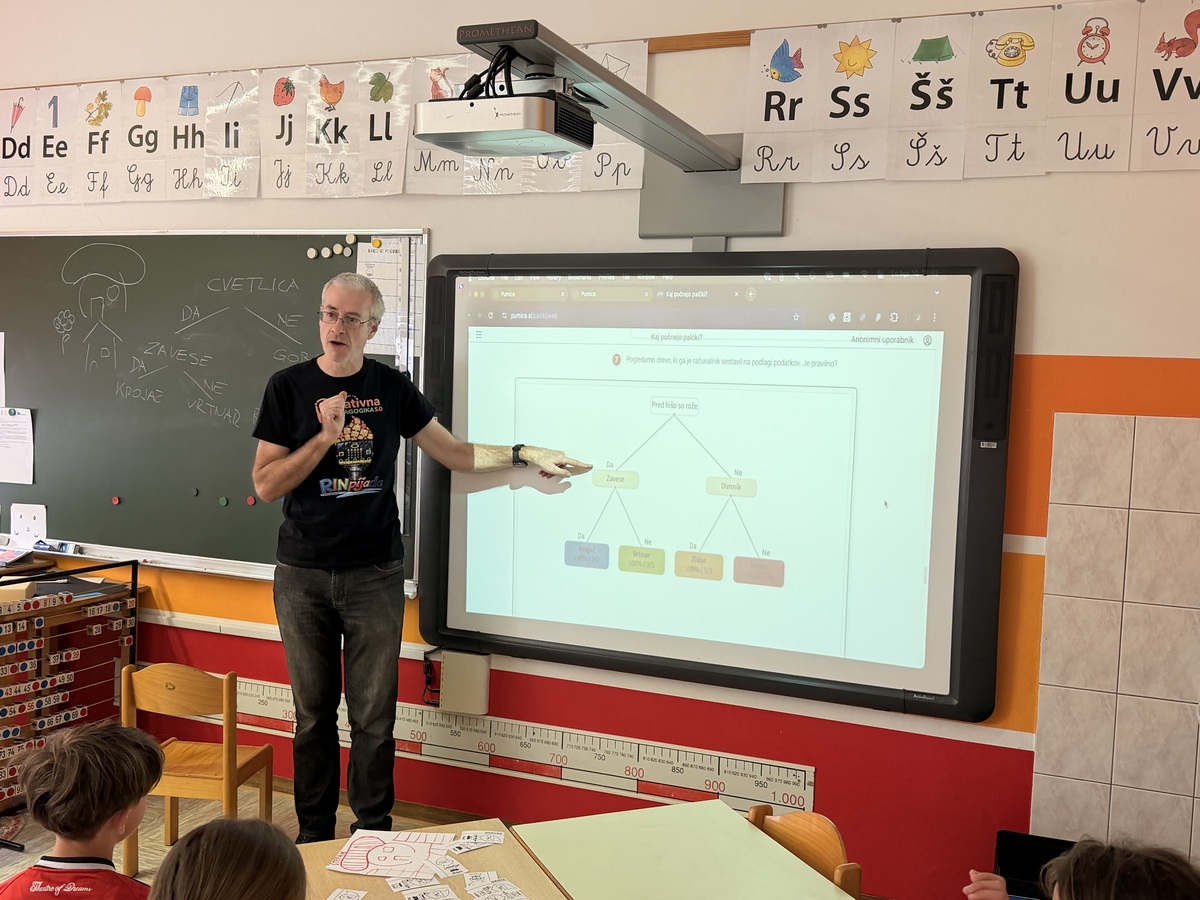 Dr. Janez Demšar predava na Fakulteti za računalništvo in informatiko Univerze v Ljubljani, kjer deluje na področju podatkovne znanosti in umetne inteligence ter svoje znanje prenaša na študente in širšo javnost. Tokrat je skupaj z asistentko pripravil delavnico, prilagojeno najmlajšim, kjer so učenci skozi igro odkrivali, kako deluje umetna inteligenca.